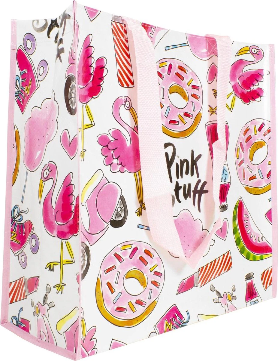 Pink Stuff! Doe je dagelijkse boodschappen met deze overwegend roze shopper. Watermeloen, roze scooters, flamingo’s en roze lipstick; de print is zó roze als maar kan. Pink isn’t just a color, it’s an attitude!