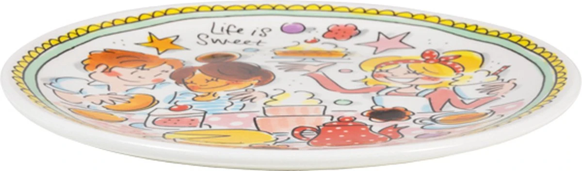 De collectie Even Bijkletsen is nog steeds de grote favoriet van vele Blond-liefhebbers. De nieuwe items zijn leuk om met elkaar te combineren, maar passen ook heel goed bij onze huidige Even Bijkletsen items. Op dit taartbord staan onze herkenbare, vrolijke illustraties en deze heeft een mintgroene rand. Op het bordje staat de tekst: “Life is sweet” Eet smakelijk!